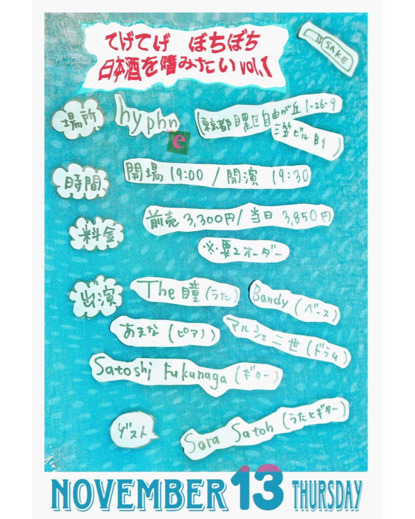 The 瞳(うた),あまな(ピアノ),Satoshi Fukunaga(ギター),Bandy(ベース),マルシェII世(ドラム) / Sora Satoh(うたとギター),あまな(ピアノ),井上真也(ベース),牧野良憲(ドラム)